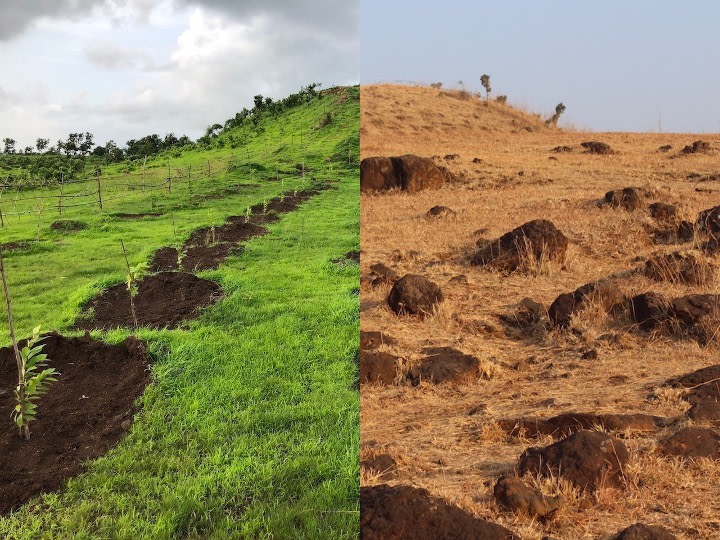 We're restoring native green cover on ecologically degraded patches of barren hills near Pune.